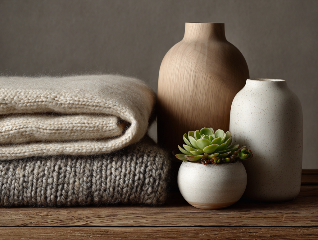 Textures are drawn from natural materials and traditional crafts. Smooth wood grains contrast with chunky knit blankets. Soft linen contrasts with supple leather. Woven baskets add dimensional interest to shelving. Ceramic vessels display varied glazes from matte to glossy. Sheepskin’s luxurious pile provides contrast to hard flooring. These variations invite touch and create sensory richness that engages inhabitants without overwhelming them.